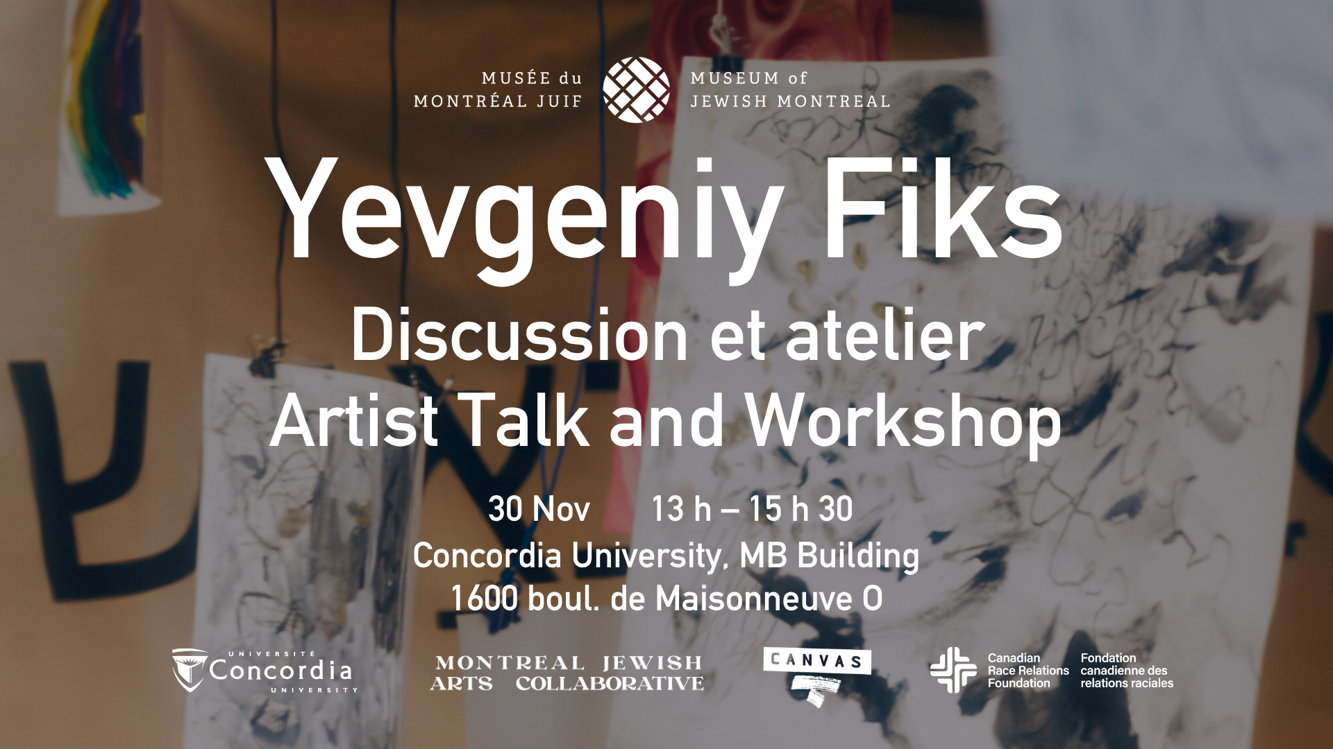 Please join the Museum of Jewish Montreal (MJM) and the Concordia Institute for Canadian Jewish Studies for an artist talk and workshop with visiting artist Yevgeniy Fiks. This masterclass will be led by New York-based artist, author, and co-creator of the Yiddishland Pavilion at the Venice Biennale, Yevgeniy Fiks. The class...